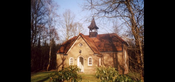 “Dan komt er een boedelscheiding op Huize Ruurlo. Het landgoed werd in twee gedeeltes verdeeld. Het noordelijke deel kwam in handen van baron W. en ‘t zuidelijke gedeelte aan deze kant van de Haarweg, kwam in handen van baron A., de vader van jonker B. Baron A. was een vrome baron en die was getrouwd met een heel vrome vrouw van de Veluwe. Die baron liet toen de zondagsschool opknappen en dat werd de Boskapel. Er kwam ook een torentje op. De baron liet dominees van de Veluwe komen en die preekten dan hier in de Boskapel. De jachtopziener B. ging dan de pachters langs om te zeggen wanneer er een dienst was. Die diensten waren dan op zondags namiddag, om half drie. En ‘t verhaal doet de ronde, dat dan de mannen rechts en de vrouwen links zaten. Op zijn sterfbed, rond 1930, heeft baron A. de hele kapel en een som geld, voor onderhoud, vermaakt aan de Hervormde kerk van Ruurlo, met de voorwaarde dat ‘t altijd een Godshuis moest blijven. Hij was toch ergens nog een beetje vrijzinnig. Er is dan eenmaal per maand, soms tweemaal, een dienst, en later in de vakantie tijd iedere zondag.’s Morgens om half negen hier en om half elf in Ruurlo of omgekeerd.”