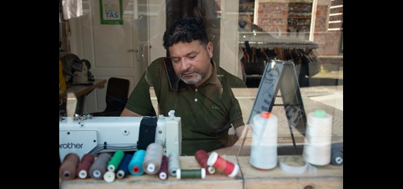 “Na een tijdje kreeg ik een verblijfsvergunning en toen kwam ik in Culemborg terecht. Eerst werkte ik bij de Kaascentrale en ik ging naar het ROC om de Nederlandse taal te leren. Na een jaar had de Kaascentrale geen personeel meer nodig en ben ik naar het Centraal Boekhuis gegaan. Acht jaar, zwaar werk was het! Ik kreeg een dubbele hernia. Altijd netjes gewerkt, maar er was bij het Boekhuis geen aangepast werk voor mij. Het UWV verklaarde me arbeidsongeschikt. Maar ik zei: ‘Nee, ik moet werken. Ik ben nog jong! Ik ga niet thuisblijven… Ik ben kleermaker.’ En zo ben ik weer voor mezelf begonnen. Eerst voor de Bijenkorf en V&D. Dat kon ik goed aan en vijftien jaar geleden opende ik Faroghie Kledingreparatie en Stomerij.”