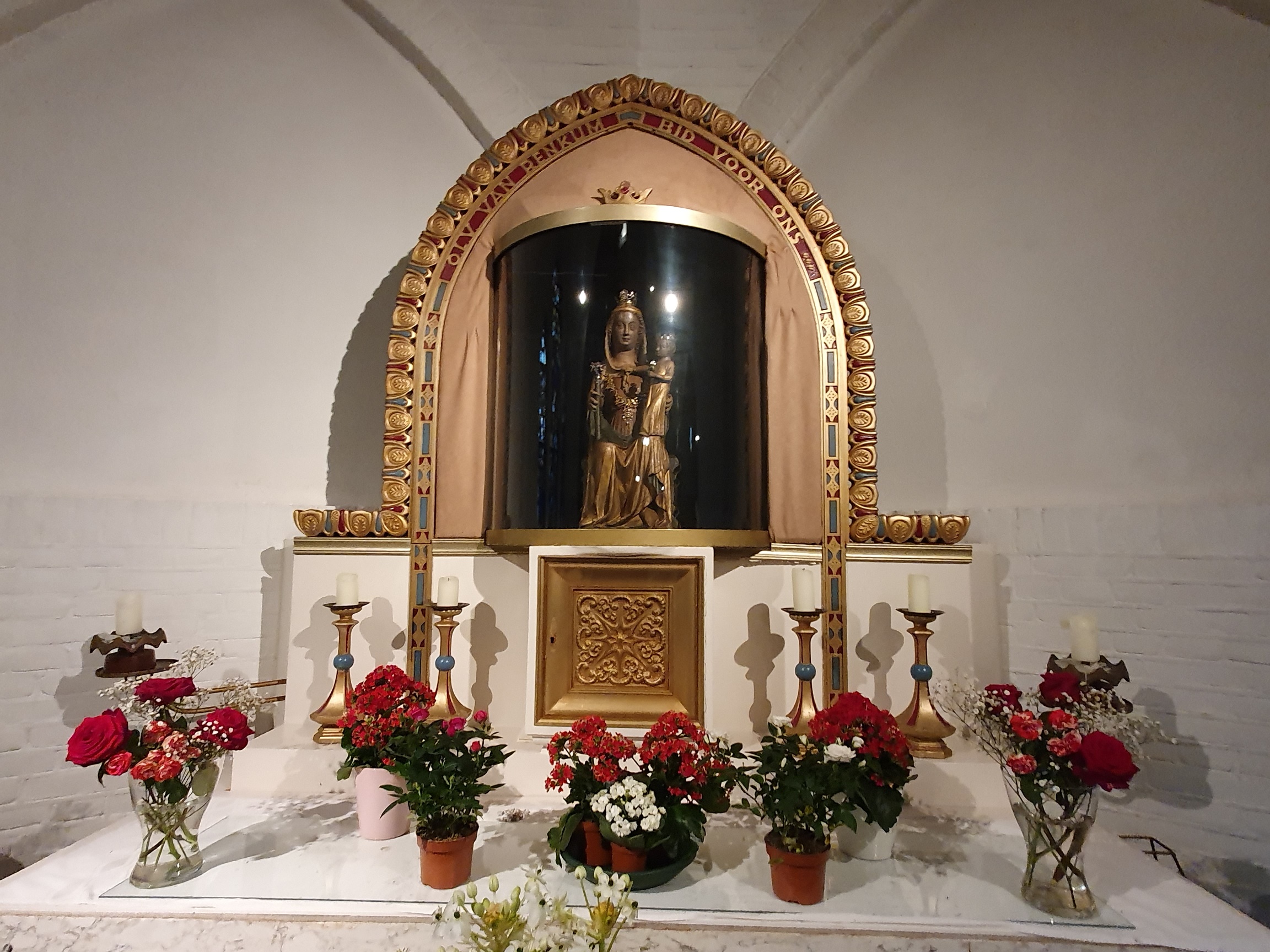 Reinald IV van Gelre (1365-1423) laat een klooster bouwen in het dorp Reyncom, waar hij een genadebeeld van Maria plaatst. Dit beeld geniet grote bekendheid doordat er diverse mirakelen aan worden toegeschreven. Veel pelgrims brengen een bezoek aan het Mariabeeld. Een bekende bezoekster is Maria van Gelre (1380-1429), hertogin van Gelre en de vrouw van Reinald IV. In 1406 is zij de eerste pelgrim van naam die bij de beeltenis van Maria van Renkum bidt. Tijdens roerige perioden, waaronder de reformatie en de Tweede Wereldoorlog, wordt het beeld elders in veiligheid gebracht. Na de Tweede Wereldoorlog keert het terug naar de nieuw gebouwde kerk Onze-Lieve-Vrouw Tenhemelopneming in Renkum, ontworpen door architect Joseph Cuypers (1861–1949). Het beeld is inmiddels op de lijst van nationaal erfgoed geplaatst en is nog altijd te bezoeken. In 2012 is er bij de kerk een nieuw bedevaartpark aangelegd met de naam “Rosarium Mariae”.